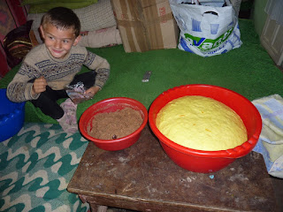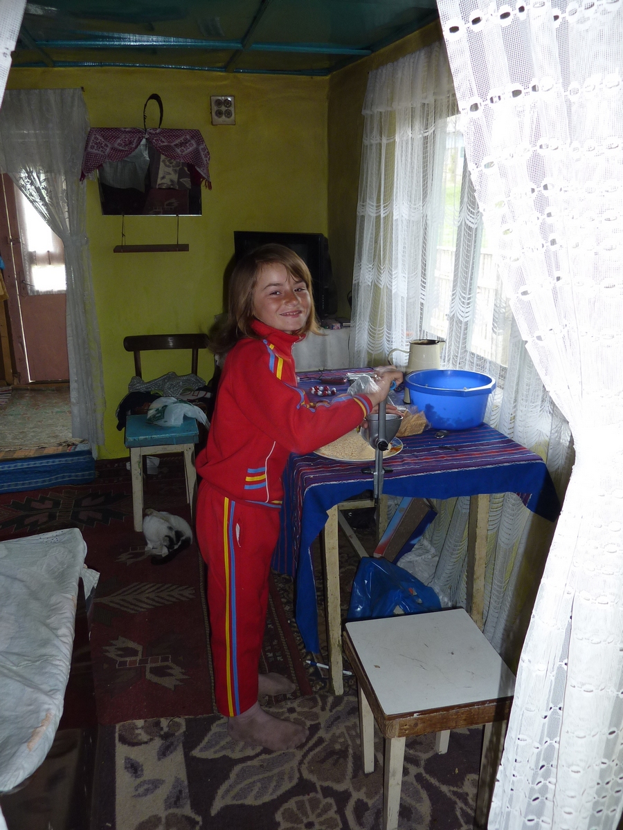 Poi il papà di Maria ha messo il caglio nel latte, il latte s'è rassodato, è stato frammentato e poi filtrato e poi è stato messo ad asciugarsi. Ho mangiato un pò del formaggio appena fatto, dal latte appena munto.