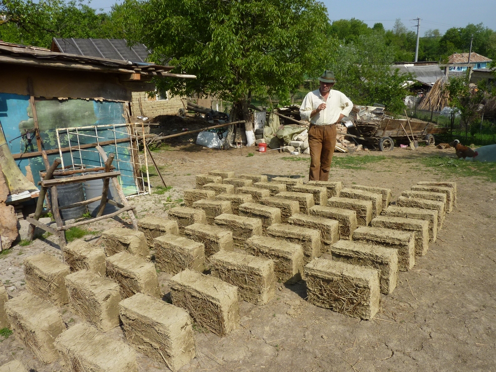 Oggi sono andato a trovare i Neacsu anche per vedere se per caso aveva incominciato i lavori intorno alla stufa perchè sono particolarmente interessato. Petru non ha incominciato nessun lavoro all'interno della casa ma da qualche giorno hanno incominciato la produzione di "chirpici" mattoni fatti con terra,paglia e "balegar" cioè la cacca del cavallo, Si impasta il tutto lo si mette in una apposita forma e poi con un colpo secco si gira la forma sul terreno e si lascia asciugare il mattone ... spernando che non piova.