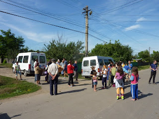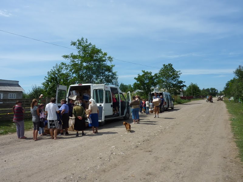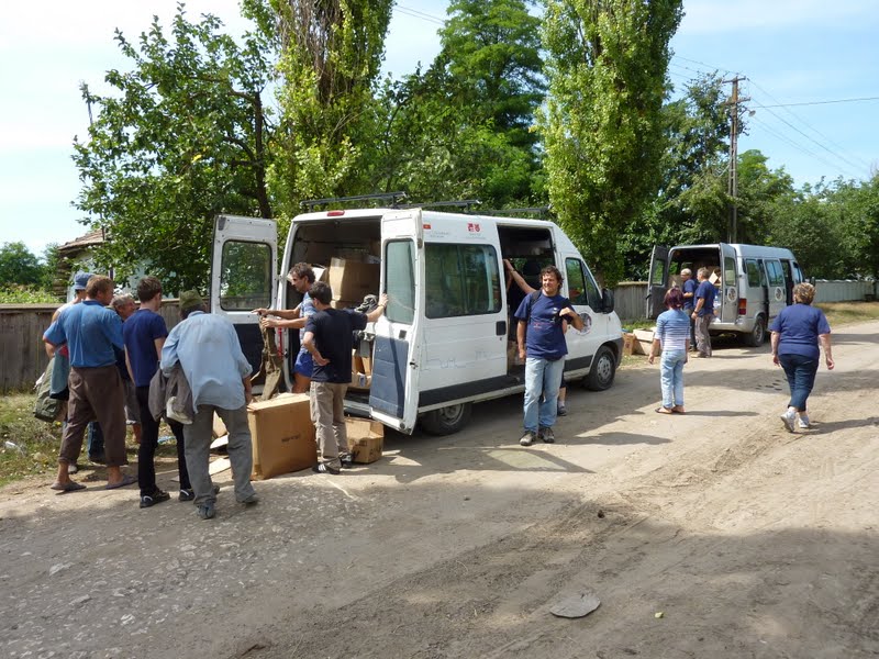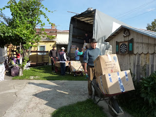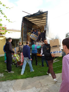I volontari in poche ore hanno scaricato 90 m3 di materiale.Terminato di scaricare il camion si sono caricati i due pulmini e si è partiti per una distribuzione.