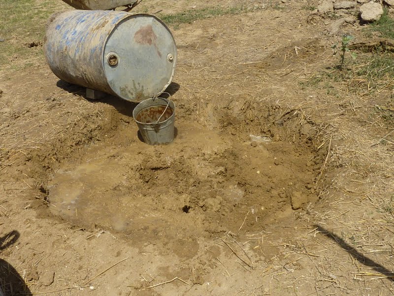 Questa è la buca dove si impasta la terra con la paglia.