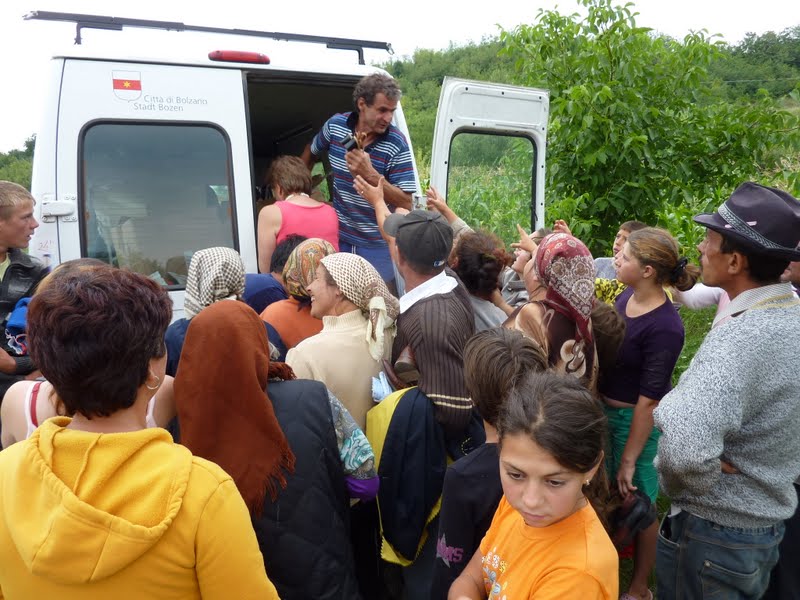 Oggi alle 14.30 sono arrivati con due pulmini i volontari del'associazione "Progetto di Aiutho".