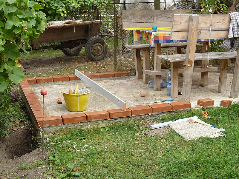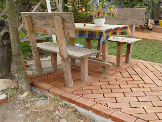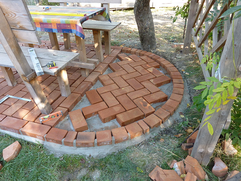 Ho capito con il senno di poi, che ze vuoi fare qualcosa di un pò preciso, questo lo devi fare dall'inizio, perchè tutti i sbagli iniziali ( quando ho fatto la piattaforma in cemento) li porti avanti fino alla fine, e questo l'ho visto quando sempre quest'anno ho deciso di fare la copertura del tavolo.A mia difesa devo dire che non ho mai fatto niente di simile, in questa occasione ho imparato a fare l amalta bastarda e gestirla secndo le mie esigenze, mentre l'anno scorso quando ho fatto la fontana, sbagliando la malta ( rapporto sabbia/calce/cemento/acqua ) mi son reso la vita difficile.Comunque incominciamo con la documentazione del pavimento in mattoni.