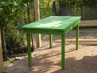 Si mangia all'aperto su un tavolo di plastica con una gamba rotta, allora ho deciso di fare un tavolo di legno.